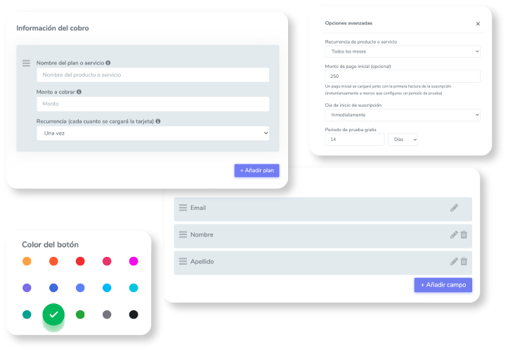 Libertad para personalizar los campos de su formulario de pago, para que pueda cobrar pagos pero también buena información.