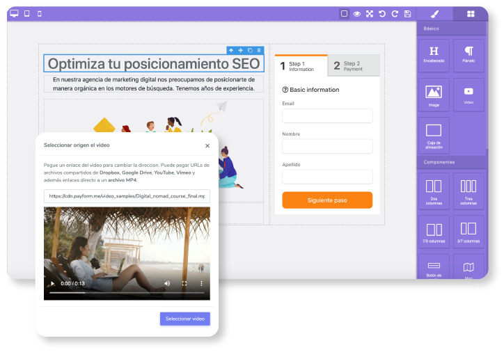 Agregue o elimine campos de información para satisfacer sus necesidades o incruste una experiencia de pago totalmente personalizada en su propio sitio web.